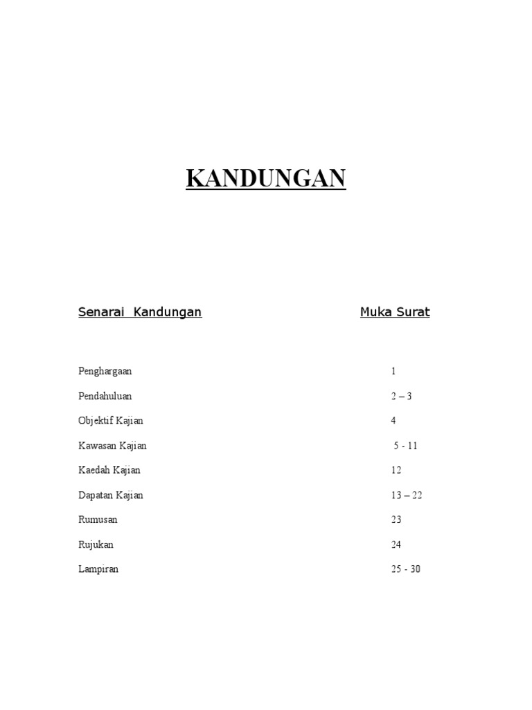 10 penghargaan 20 pengenalan 30 objektif kajian 40 lokasi kawasan kajian 41 peta daerah kawasan kajian 42 peta lakar kawasan kajian 50 kaedah kajian. MUHAMMAD FAHMI AZIZI BIN NORIZAM KELAS. 1 majlis peperiksaan malaysia sijil tinggi persekolahan.