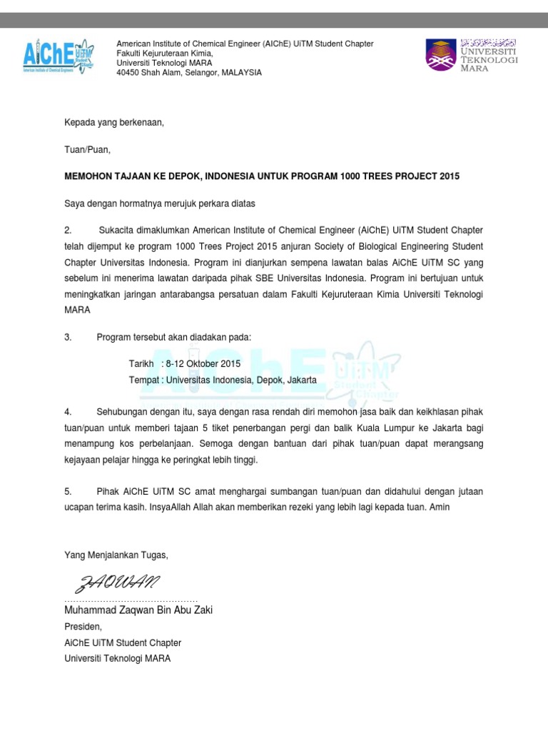 Contoh Surat Memohon Tajaan Pdf
