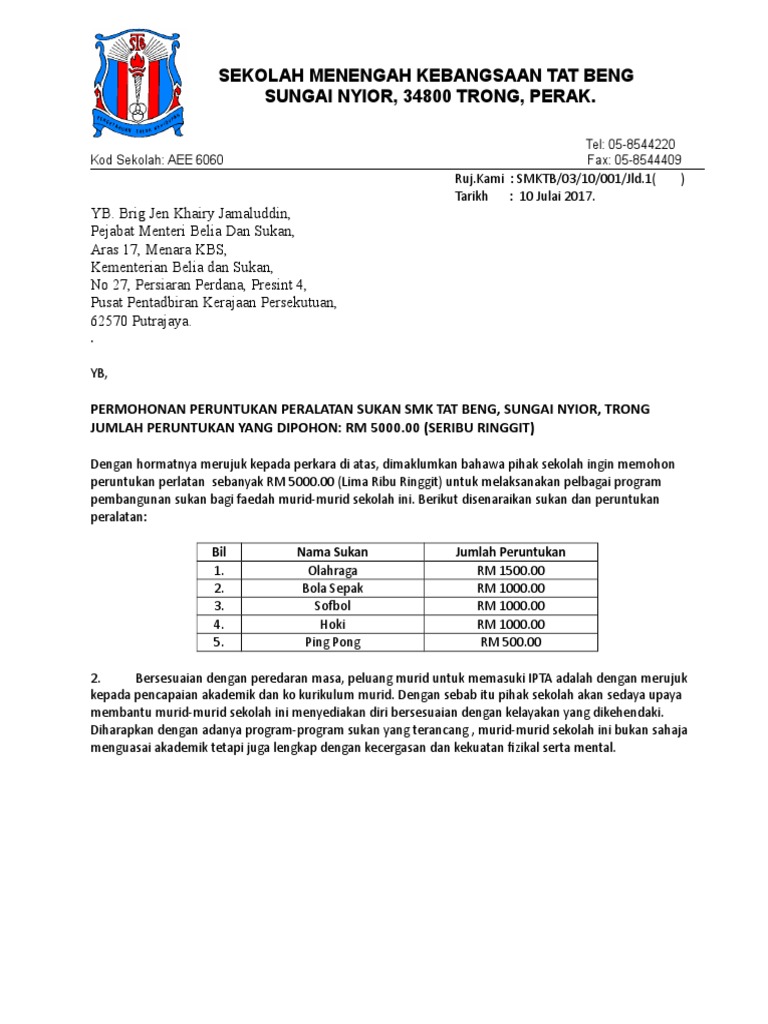 Contoh Surat Memohon Sumbangan Yb Contoh Surat
